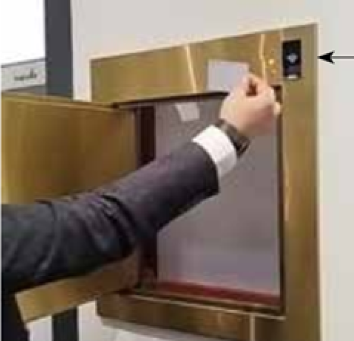 - elektromagnetické zámky, které nedovolují otevírání více dvířek najednou. Otevření dvířek automaticky zablokuje ostatní. Dvířka jsou osazena LED indikací.