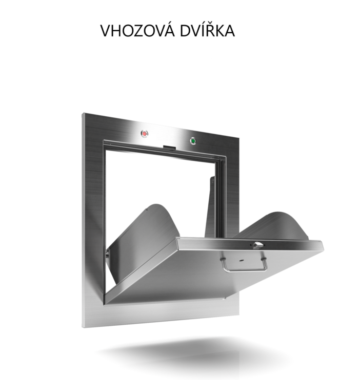 - vhozová dvířka otevíravá směrem dolů pro shozy odpadu